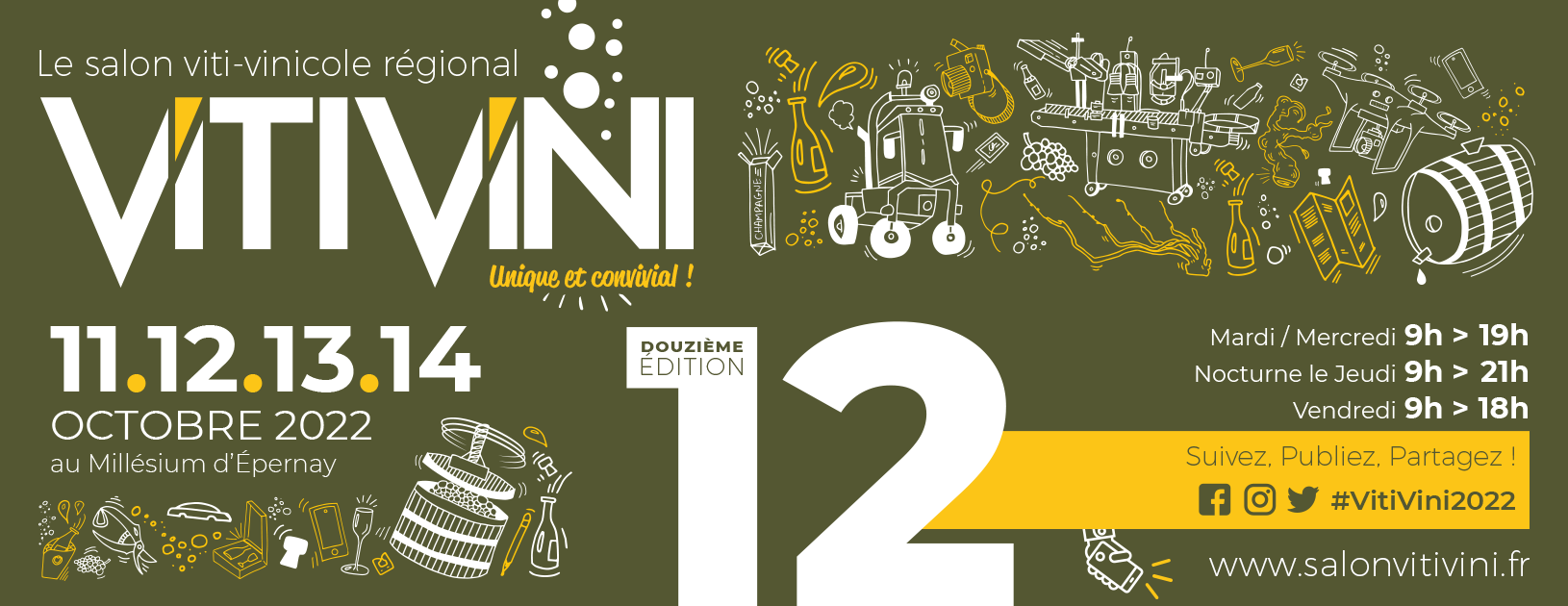 Le Salon Viti Vini rassemble, fédère et valorise les savoir-faire uniques de la Champagne pour promouvoir les ventes et dynamiser les marchés. Aujourd'hui encore, la motivation est intacte ! Le salon Viti Vini, co-produit par le Club des Entrepreneurs Champenois et le Millesium, a trouvé ses marques, sa clientèle et compte plus de 195 entreprises exposantes dans des domaines de compétences variés. Leur point commun : toutes ont leur siège sur l'appellation Champagne.